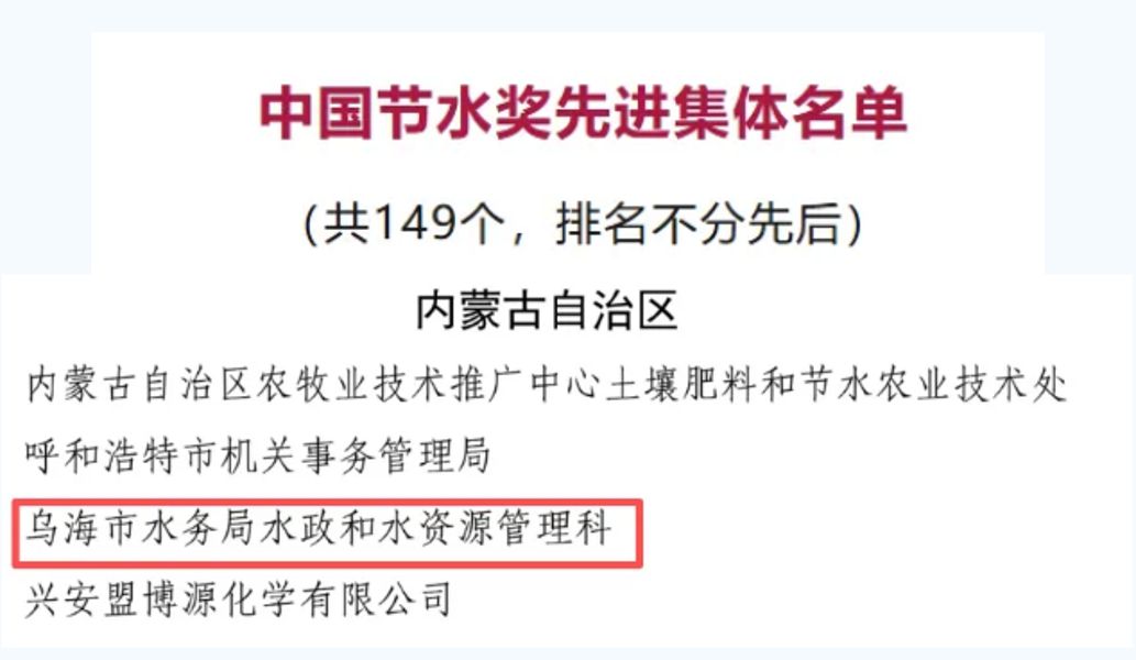 国家级荣誉!乌海市水务局水政和水资源管理科荣获中国节水奖先进...