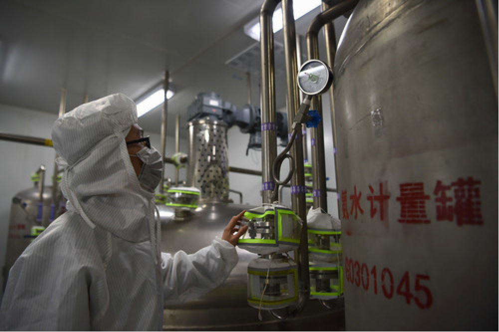 ↑3月12日,在托克托工业园区内的内蒙古常盛制药有限公司,工人在生产车间作业。新华社发(李志鹏摄)