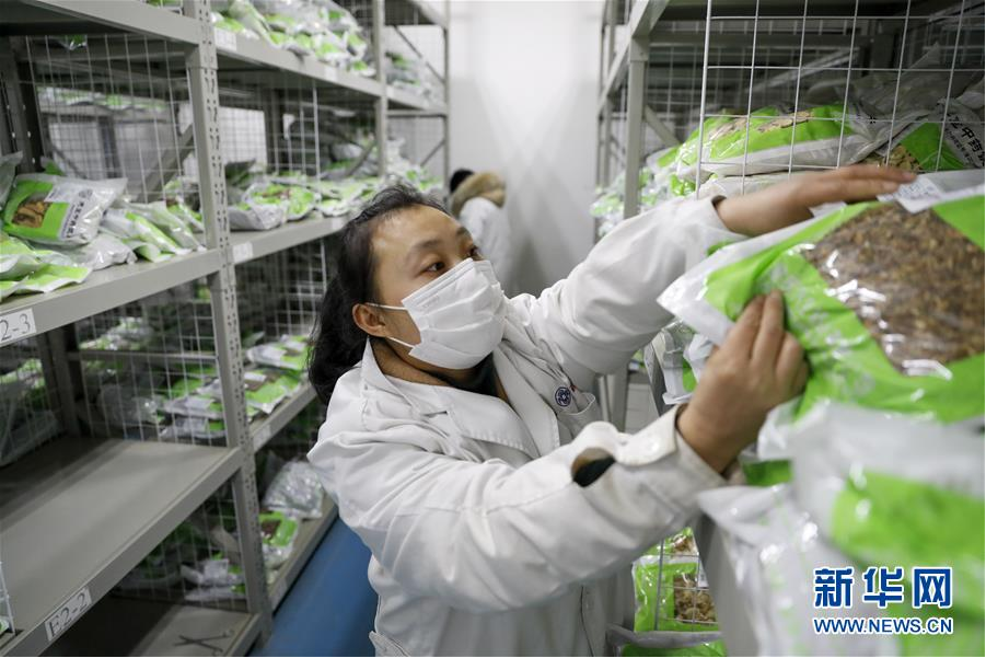2月24日,重庆市城口县天宝药业有限公司员工在整理库房内的成品中药材。重庆市城口县在积极做好疫情防控的同时,有序组织辖区内企业群众进行复工复产和春耕生产,并出台增设公益性岗位、与企业或农业专业合作社积极对接发布用工需求等一系列有力措施。新华社发(黄伟 摄)