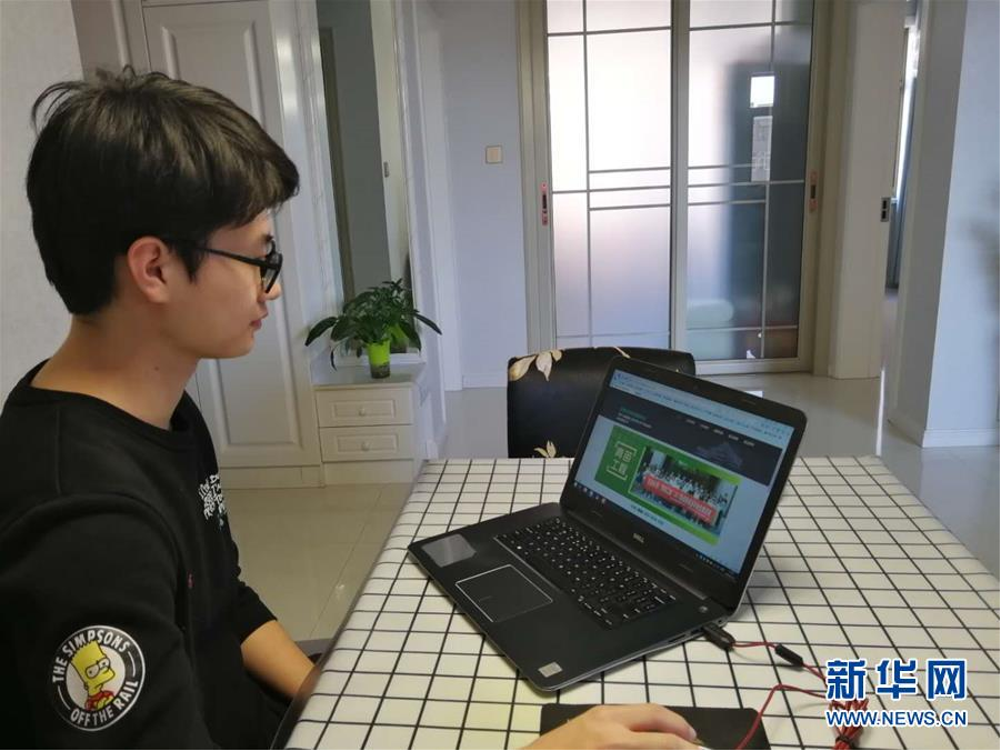 天津大学应届毕业生马占川在甘肃省白银市的家中浏览招聘网站(资料照片)。新华社发
