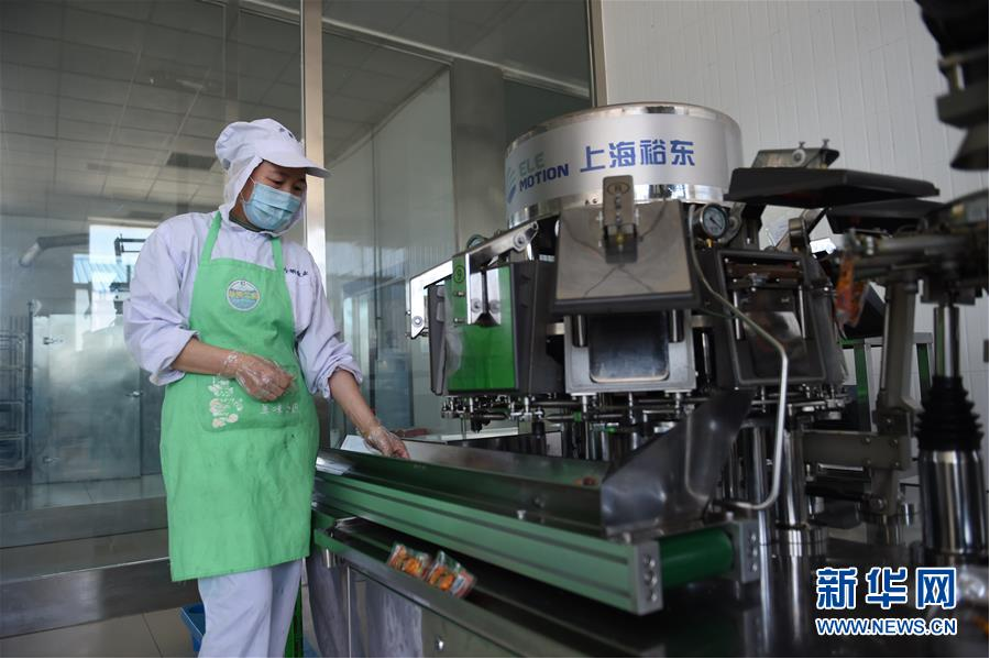 3月10日,工作人员在内蒙古羊羊牧业熟制品生产线上加工熟食。 新华社记者 连振 摄