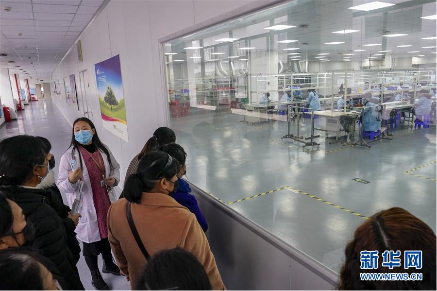 2月27日,在重庆市秀山县工业园区一家电子企业生产车间,求职者参观了解工作岗位情况。重庆市秀山县工业园区积极推动“送岗上门”活动。通过面向乡镇村民发布就业岗位信息、联合乡镇(街道)包车组织有意向求职者参观考察本地企业、网络招聘等多项举措,工业园区帮助村民实现本地快速就业。新华社记者 刘潺 摄